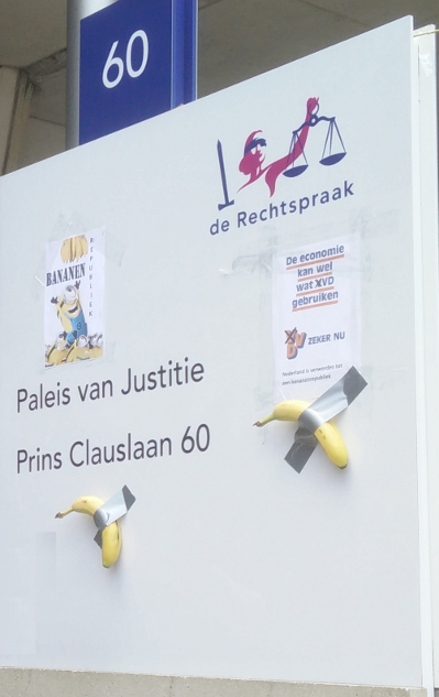 Op 28 juni liep ik met mijn broer langs de rechtbank om een banaan neer te leggen als symbool voor de bananenrepubliek die Nederland inmiddels is. Er waren nog vier andere mensen maar die stonden op zo'n 10 meter afstand. Er stopte een politiebus met 6 agenten, iedereen moest zijn ID afgeven, dit werd blijkbaar gecontroleerd en genoteerd. Daarna werd ons gezegd terug naar huis te gaan.